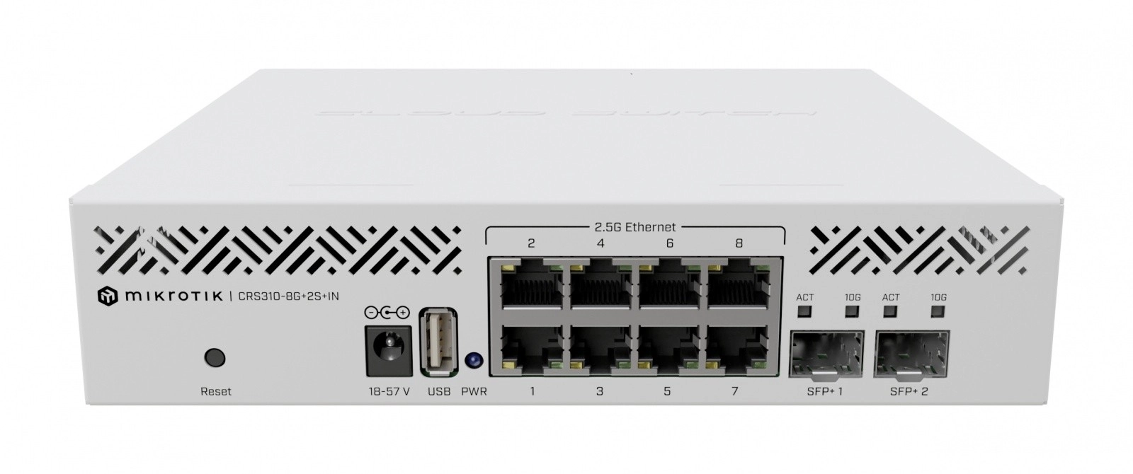De topklasse switch MIKROTIK CRS310-8G-2S+IN brengt hogesnelheidsconnectiviteit in een compact chassis: 8× 2,5G Ethernet en 2× 10G SFP+ met ondersteuning voor meerdere snelheden (1G/2,5G/10G). Zo kun je verbindingen flexibel combineren of het apparaat inzetten als een 10× 2,5G oplossing. Een ideale keuze om een bestaande gigabit-infrastructuur te upgraden naar hogere snelheden.