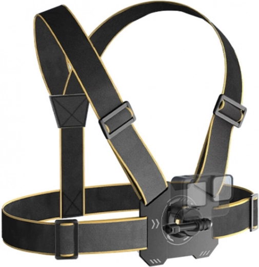 Comfort en zekerheid bij elke beweging – het vestontwerp maakt snel aan- en uittrekken mogelijk; vier gespen en elastische banden passen zich aan verschillende lichaamstypen aan. Eénhandige snelkoppeling (indrukken en 90° draaien) versnelt de bediening van de camera zonder oponthoud.