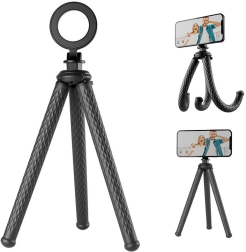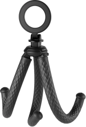 De unieke, octopusachtige vorm van het statief zorgt ervoor dat het apparaat stabiel kan staan op vrijwel elk oppervlak. De flexibele aluminium staaf waarvan het statief is gemaakt, kan naar wens worden gevormd en om verschillende objecten worden gewikkeld. Deze eigenschap maakt het statief extreem veelzijdig en geschikt voor een breed scala aan toepassingen, van vloggen thuis tot filmen in de buitenlucht.