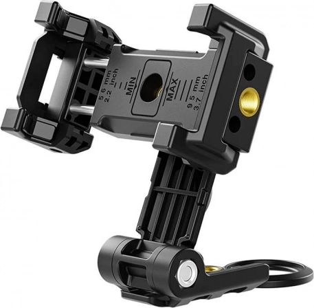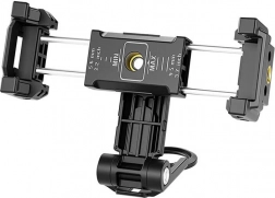 Dankzij het brede klem bereik van 56–95 mm past hij op de meeste telefoons. V‑gevormde rubberen inzetstukken zorgen voor een stevige grip zonder beschadiging, terwijl twee 1/4"-schroefdraden op het frame en de voet eenvoudige montage op een statief, arm of selfiestick mogelijk maken. Het inklapbare ontwerp werkt ook als tafelstandaard voor films, meetings en social media.
