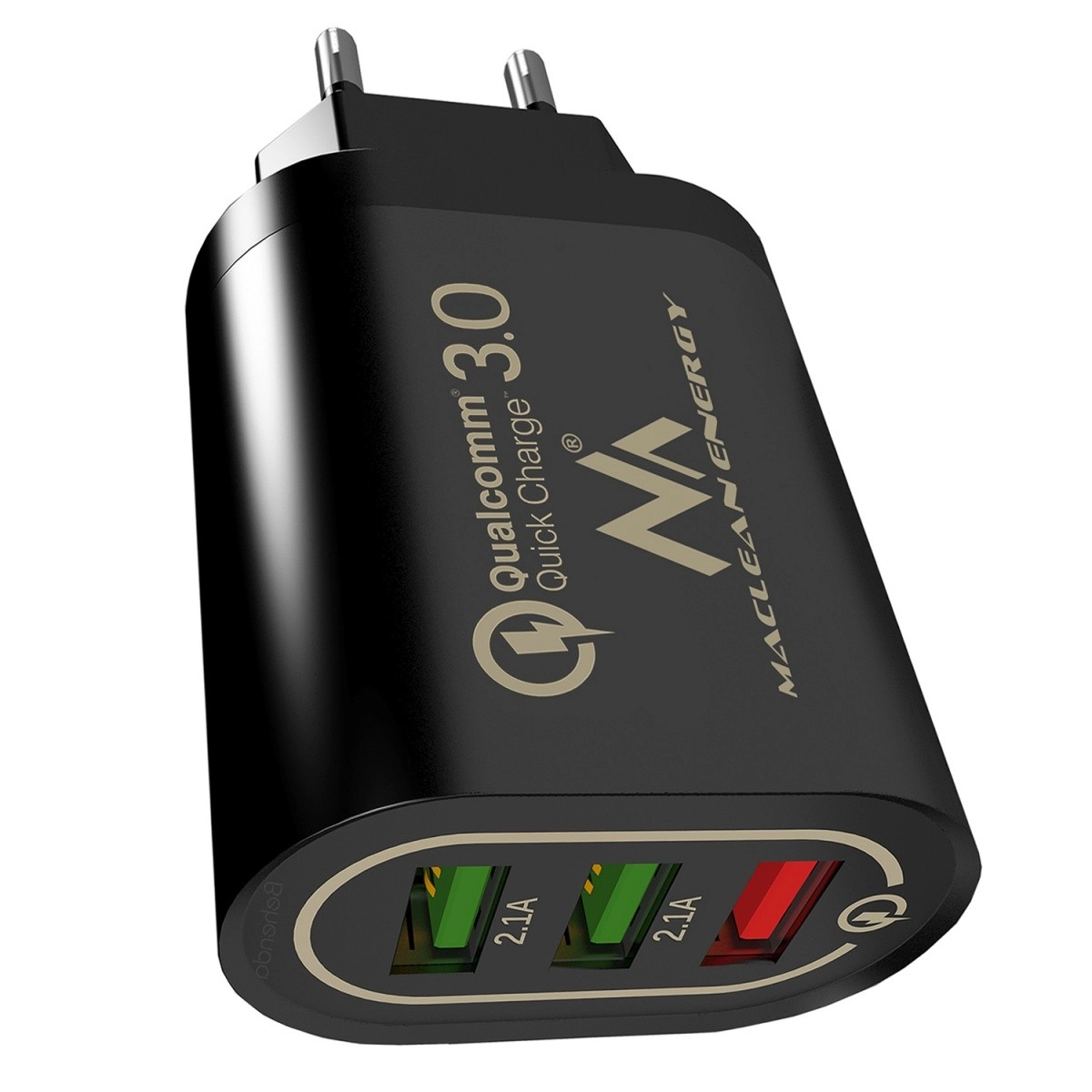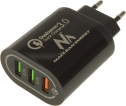 Deze compacte en krachtige MACLEAN ENERGY netlader met drie USB‑poorten laat je tot drie apparaten tegelijk opladen. Dankzij Qualcomm Quick Charge 3.0 breng je minder tijd door bij het stopcontact en krijg je stabiel en veilig opladen voor telefoons, tablets, oordopjes en andere elektronica.