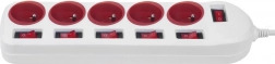 Deze robuuste verdeelstekker biedt vijf volwaardige stopcontacten met onafhankelijke tuimelschakelaars, waarmee u specifieke apparaten kunt uitschakelen zonder de stekkers los te hoeven koppelen. Het praktische ontwerp in combinatie met duidelijke rode accenten maakt dagelijks gebruik eenvoudiger.