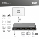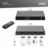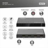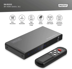 De elegante en compacte DIGITUS 3×1 HDMI-schakelaar laat je tot drie HDMI-bronnen op één display aansluiten. Ideaal voor een tv aan de muur, gameconsoles, spelers of computers – je hebt slechts één HDMI-kabel naar het scherm nodig en schakelt tussen bronnen op afstand.