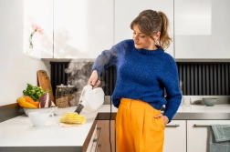 Compact en praktisch ontwerp maakt opslag in kleine ruimten eenvoudig, terwijl de geïntegreerde antikalkfilter een lange levensduur van het apparaat garandeert. LED-display met bedieningspaneel vereenvoudigt de bediening.