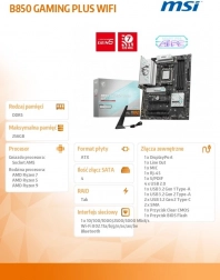 Het B850 Gaming Plus WiFi gaming‑bord bouwt op het moderne AMD‑platform met ondersteuning voor Ryzen 9000/8000/7000‑processors en snel dual‑channel geheugen DDR5 8200+ MT/s (OC). Dankzij PCIe 5.0 voor de grafische kaart en Lightning Gen 5 x4 M.2 opslag krijg je directe respons en hoge FPS. Ingebouwde Wi‑Fi 7 en 5G LAN zorgen voor maximale stabiliteit en snelheid van je verbinding.