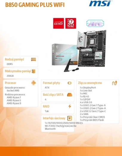 Het moederbord B850 GAMING PLUS WIFI levert topprestaties voor gamers en creators: Wi‑Fi 7, 5G LAN, PCIe 5.0, razendsnelle M.2 Gen5 en een robuuste 12+2+1‑voedingssectie voor stabiliteit bij overklokken. Geoptimaliseerd voor AMD Ryzen 9000/8000/7000, met eenvoudige montage via EZ DIY en hoogwaardige audio dankzij Audio Boost.