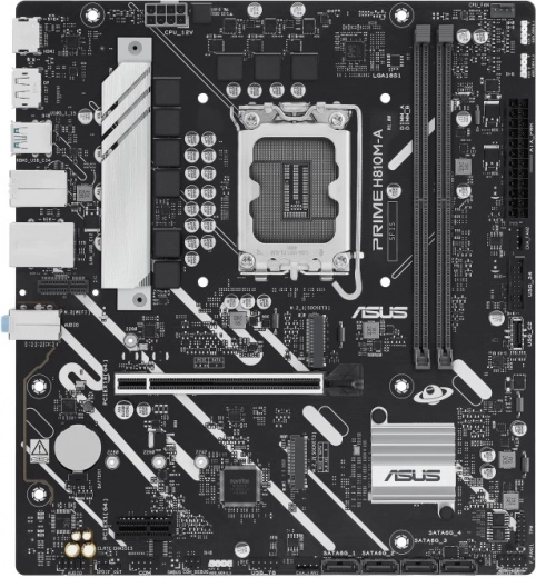 Het ASUS PRIME H810M-A-CSM-moederbord is ontworpen met de behoeften van moderne gebruikers in gedachten. Met afmetingen van 24,4 x 22,2 cm biedt het ruime mogelijkheden voor uitbreiding en het aansluiten van randapparatuur. Dankzij de LGA1851-socket is ondersteuning voor de nieuwste Intel Core Ultra-processors gegarandeerd.
