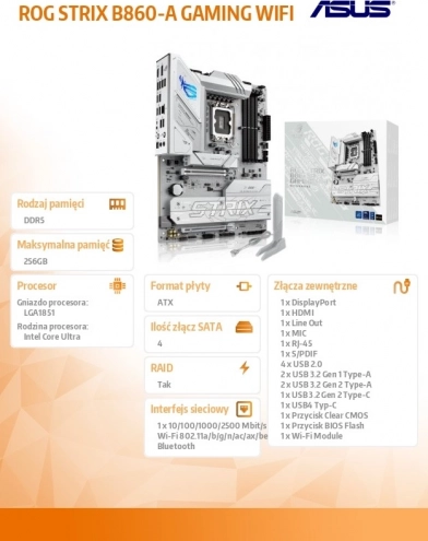De Asus ROG Strix B860-A biedt stabiliteit, zelfs bij de meest veeleisende gamingtaken, dankzij ondersteuning voor Intel Core Ultra-processors en DDR5-geheugen.