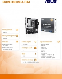 Bouw een snelle en stille pc met het ASUS Prime B860M-A CSM bord. De combinatie van de Intel B860-chipset en DDR5-geheugen met snelheden tot 8666 MHz zorgt voor razendsnelle respons, stabiliteit en ruimte voor toekomstige uitbreidingen tot 256 GB. Geoptimaliseerde stroomvoorziening en hoogwaardige koeling garanderen langdurig betrouwbaar gebruik.