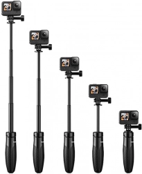 De Telesin mini statief/selfiestick 2.0 is een veelzijdige accessoire voor actioncams zoals GoPro HERO, DJI ACTION, ACE PRO en X4. Hij biedt stabiliteit en een zekere grip in het veld, op reis en tijdens live-uitzendingen. De robuuste aluminium behuizing wordt aangevuld met een ergonomische, met siliconen beklede greep voor veilig vasthouden.