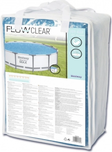 Het zonnezeil is bedoeld voor zwembaden met een diameter van 427 cm of 457 cm. Voordelen: verhoogt de watertemperatuur en verlengt zo het zwemseizoen, beschermt tegen vuil, drijft op het wateroppervlak. De diameter van het zeil is 417 cm.
