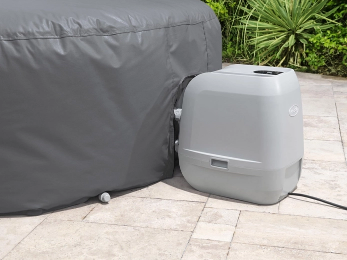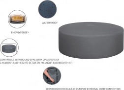 De montage is snel en intuïtief. Een verstelbare omtrekband met veiligheidsclips zorgt voor een stevige bevestiging, terwijl een geïntegreerde rits een probleemloze aansluiting op de pomp mogelijk maakt zonder de hoes te hoeven verwijderen. De hoes is compatibel met de modellen Lay‑Z‑Spa St. Moritz, Monaco, Santorini HydroJet Pro en andere ronde jacuzzi’s met een diameter van 216 cm.
