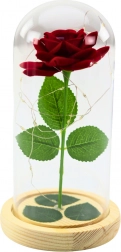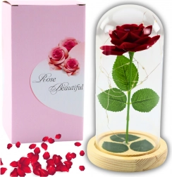 Deze eeuwige rode roos bootst een echte bloem natuurgetrouw na en behoudt dankzij de glazen koepel zijn tijdloze uitstraling zonder stof en onderhoud. De warme LED-achtergrondverlichting benadrukt de schoonheid van het arrangement en verandert je huis in een gezellige en romantische plek.
