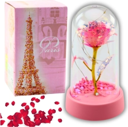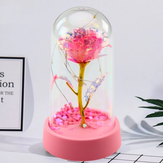 Kristallen roos in koepel met LED-verlichting is een elegante en symbolische gift die de diepste gevoelens uitdrukt en elk interieur een bijzondere uitstraling geeft. Dankzij de subtiele LED-verlichting en de zwevende hartjes in de koepel ontstaat een magische sfeer, ideaal voor romantische gelegenheden.