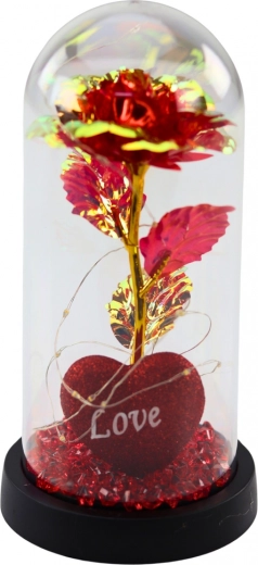 LED verlichting creëert warm licht, dat de schoonheid van de kristallen roos benadrukt en een unieke sfeer aan het interieur toevoegt. De stijlvolle koepel beschermt de roos en maakt het mogelijk om van haar charme van elke kant te genieten. De plastic sokkel is stevig en stabiel, wat de veiligheid en esthetiek van het cadeau waarborgt.