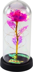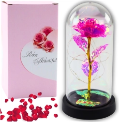 Kristallen roos onder een koepel met LED-verlichting is een elegant en symbolisch cadeau dat uw gevoelens uitdrukt en een bijzondere uitstraling aan elk interieur geeft. De veranderende kleuren onder het zachte LED-licht creëren een onvergetelijke sfeer, ideaal voor romantische gelegenheden.