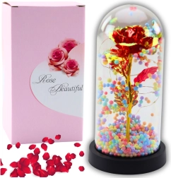 Deze decoratieve roos in een koepel met LED-verlichting is de perfecte manier om liefde en bewondering te uiten. Er is geen onderhoud nodig, waardoor ze eeuwig mooi blijft. De subtiele LED-verlichting creëert een aangename sfeer, ideaal voor interieurdecoratie of romantische momenten.