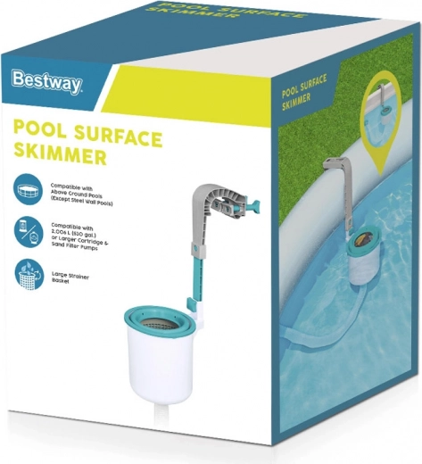 Omdat het net is gemaakt van corrosiebestendige kunststof, is het onderhoudsvriendelijk en eenvoudig te reinigen. Aanbevolen voor alle Bestway opzetzwembaden, behalve modellen met stalen wanden. Installeer vandaag nog een oppervlakteskimmer en geniet deze zomer van meer tijd in uw zwembad.
