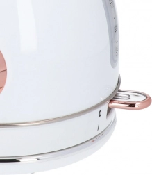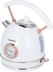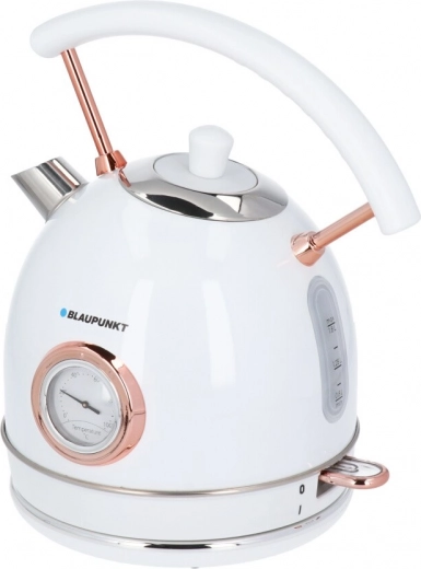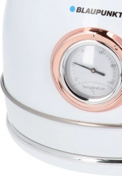 De elektrische waterkoker van Blaupunkt heeft een roestvrijstalen behuizing in het wit en moderne designelementen. Het 3000 W verwarmingselement garandeert snel opwarmen, wat een aanzienlijke verbetering is ten opzichte van standaard 2000W-kokers. Dankzij de capaciteit van 1,8 l (min. 0,8 l) is het geen probleem om warme dranken voor het hele gezin te bereiden.