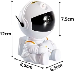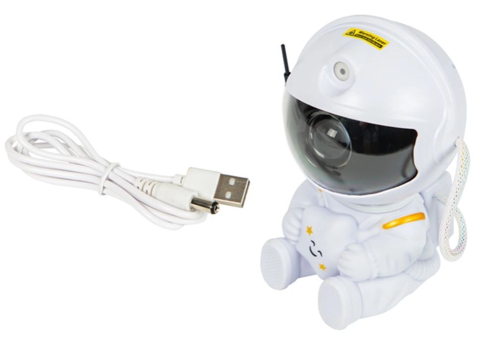 Het ontwerp van de zittende astronaut met een magnetisch bevestigde, volledig draaibare kop (360°) laat je de projectie precies richten waar die het beste uitkomt. De projector is een prachtige decoratie voor zowel de woonkamer als de kinderkamer en dankzij de USB-voeding sluit je hem eenvoudig aan op een adapter, powerbank of computer.