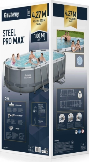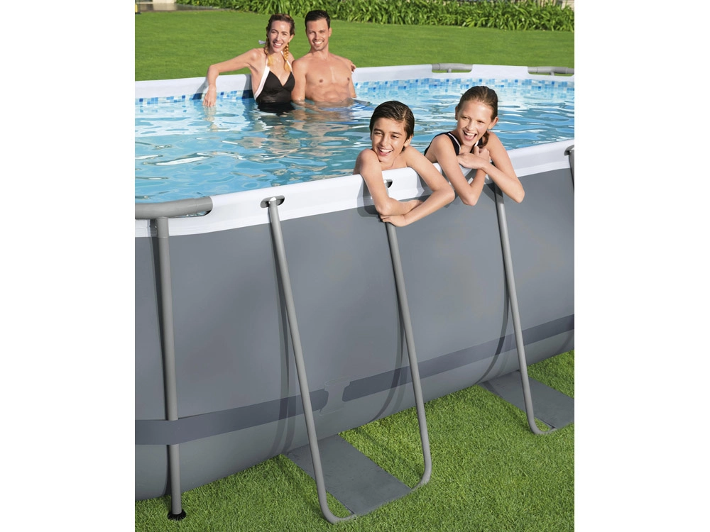 Bestway Power Steel™ framezwembad met afmetingen 424 x 250 x 100 cm en een inhoud van 7.250 l, ideaal voor verfrissing op warme dagen. De elegante rechthoekige vorm is perfect voor zwemmen, spelen en zomers plezier. De installatie is snel: vul met water en het relaxen kan beginnen.