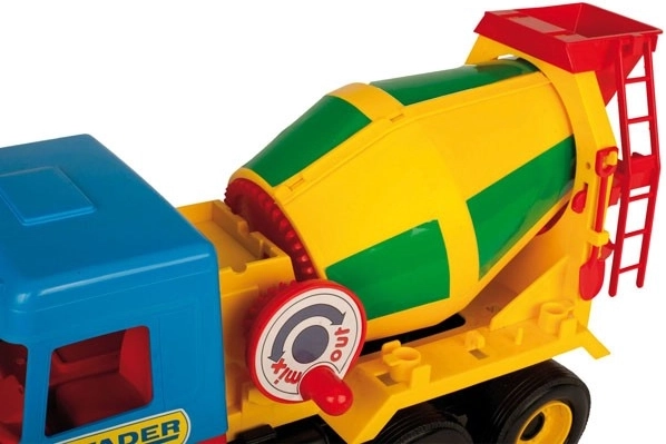 Het speelgoed is uitgerust met een beweegbare betonmolen en een functionele schuif voor creatief spel.