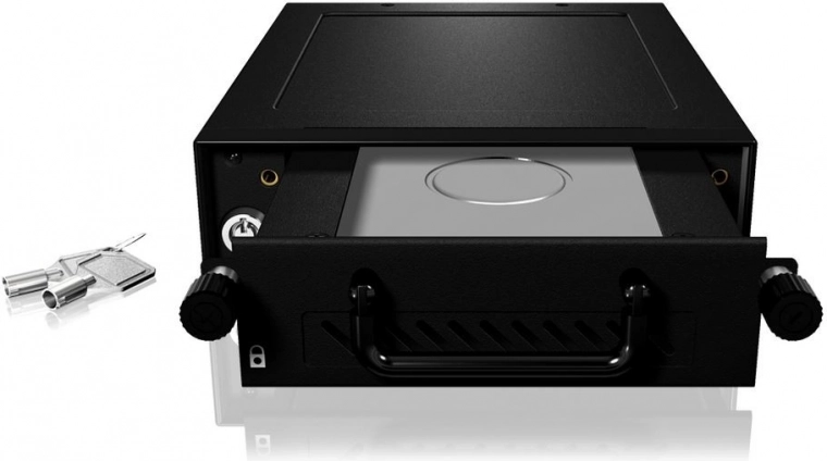 Universele hotswap-kooi voor de 5,25" bay voor zowel 3,5" als 2,5" schijven met SATA/SAS-interface. Biedt snelheid tot 6 Gb/s, metalen behuizing, slot tegen onbevoegde toegang en actieve koeling met een 30 mm ventilator. Ondersteunt Plug & Play en Hot Swap voor eenvoudige schijfvervanging zonder uitschakelen.