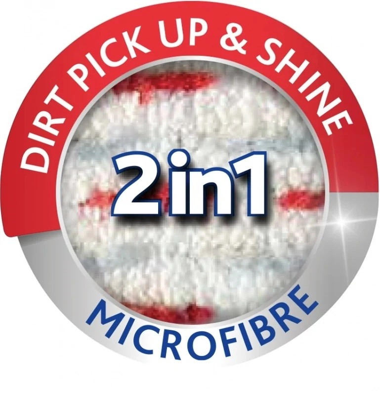 De praktische verpakking bevat 2 vervangende mopkoppen, zodat je altijd een schone mop bij de hand hebt.
