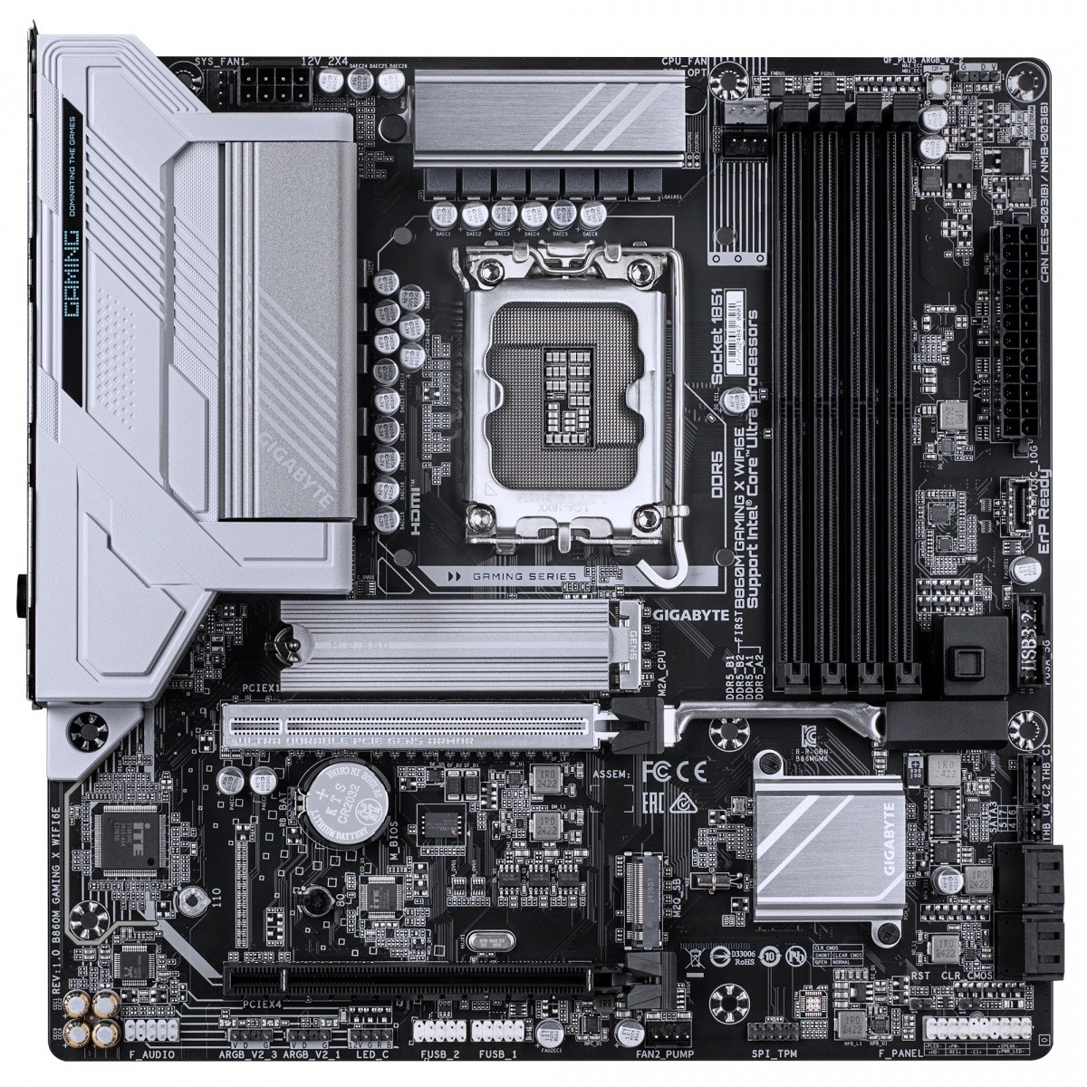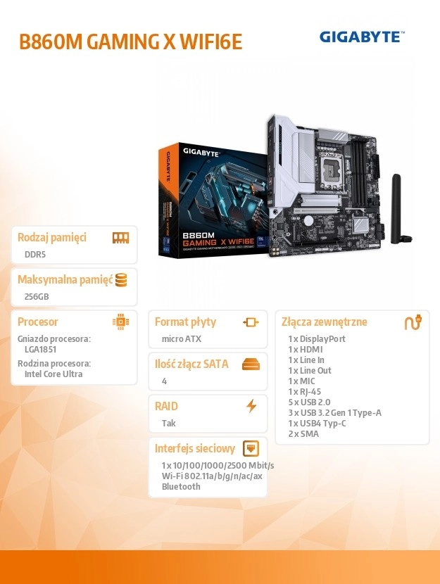 Krijg stabiele prestaties voor gaming en productiviteit. Het B860M Gaming X WiFi 6E‑moederbord ondersteunt Intel Core Ultra (2e generatie) processors en behoudt dankzij de hybride 8+1+2‑fasen voeding en geavanceerde koeling hoge kloksnelheden zonder throttling. Twee M.2‑sleuven, waaronder één PCIe 5.0 x4, zorgen voor razendsnel laden van games en apps.
