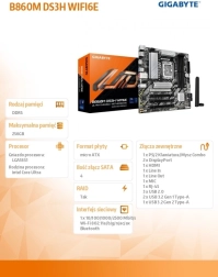 Het GIGABYTE B860M DS3H WIFI 6E moederbord biedt moderne uitrusting voor systemen met Intel Core Ultra (Series 2) processors. Het levert PCIe 5.0 M.2 voor extreem snelle opslag, 2.5GbE LAN en Wi‑Fi 6E voor razendsnelle verbindingen, een verbeterde voeding met Hybrid 5+1+2 VRM en uitgebreide connectiviteit met 2× DisplayPort en HDMI. Eenvoudige montage dankzij EZ‑Latch en WIFI EZ‑Plug, overzichtelijk beheer via AI PerfDrive en praktische M.2 Thermal Guard koeling voor stabiele SSD‑prestaties.