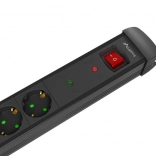De betrouwbare overspanningsbeveiliging van LANBERG zorgt voor een veilige werking van computers, tv’s, audiosystemen en kantoortechniek. Dankzij drie varistors met een totale energie van 555 J worden alle drie lijnen (G–N, G–L, N–L) beschermd en wordt het risico op schade bij spanningsschommelingen of onweer geminimaliseerd. De geïntegreerde 10 A‑zekering en de onmiddellijke reactie van 10 ns verhogen het veiligheidsniveau.