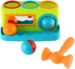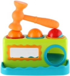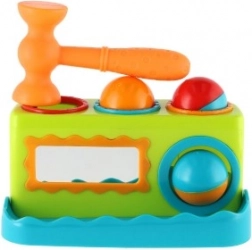 Dit kleurrijke plastic hamerspel van 21 cm is een uitstekende keuze voor de eerste ontwikkelingsspelletjes. Kinderen slaan met het hamertje veilig drie balletjes in de voorbereide openingen, waarmee ze greep, kracht en nauwkeurigheid trainen. Het geïntegreerde spiegeltje aan de voorkant verhoogt de interactie en het speelplezier.