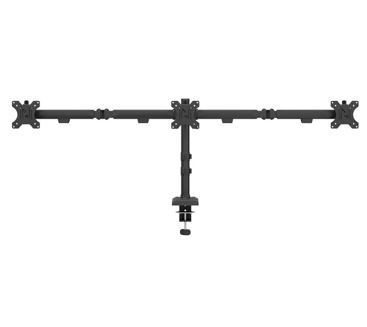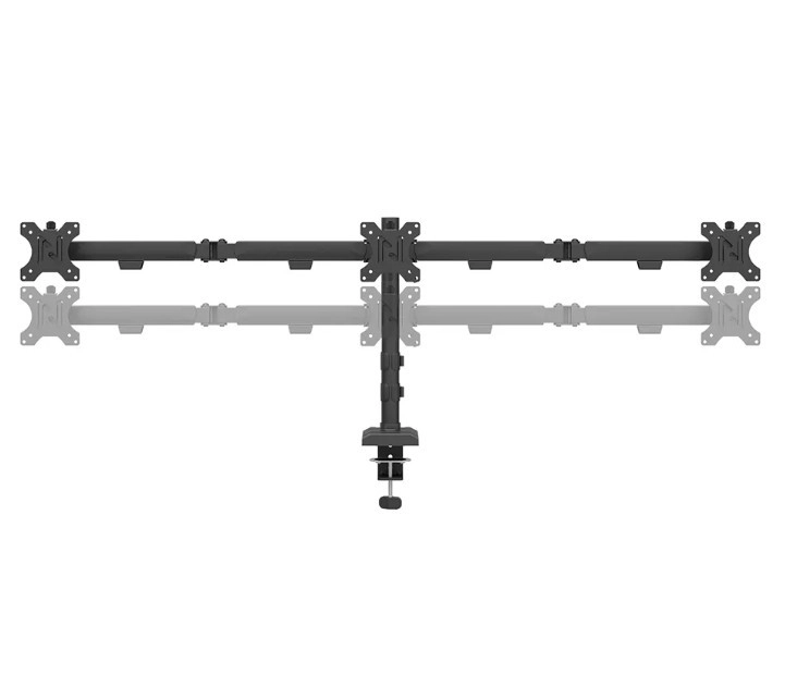 Het frame is gemaakt van staal en biedt stabiele ondersteuning voor maximaal drie monitoren, elk tot 6 kg.