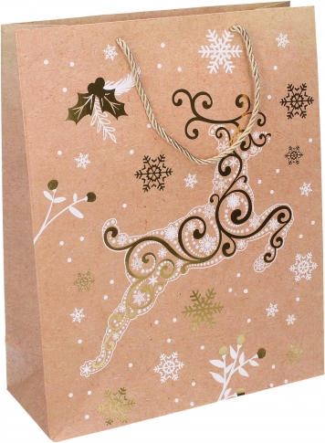 Maak het inpakken van cadeaus eenvoudiger met deze elegante kersttas in maat M. Dankzij het stevige materiaal en de hoogwaardige afwerking is hij geschikt voor boeken, cosmetica, kleine elektronica en textiel. Vier verschillende motieven geven elk cadeau een feestelijke sfeer.