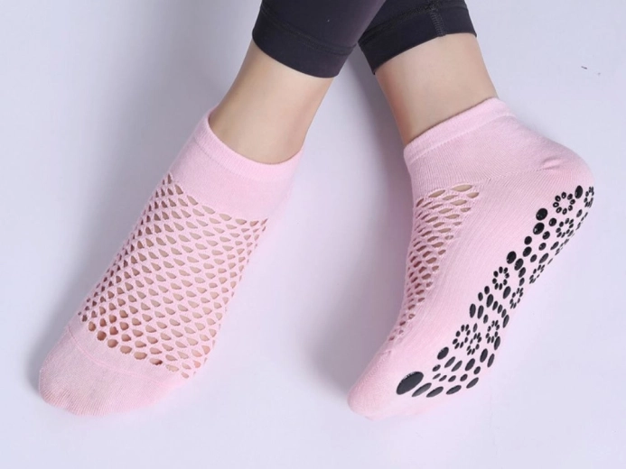Ontdek comfort en een zekere stap met deze antislip katoenen yogasokken. Ze zijn zacht, ademend en huidvriendelijk, ideaal voor yoga, pilates, training en thuisgebruik. Siliconen antislipdetails op de zool zorgen voor stabiliteit op verschillende oppervlakken en verkleinen het risico op uitglijden. De universele maat 36–40 zit uitstekend en de elastische boord blijft goed zitten zonder onprettig te knellen.