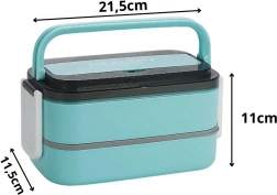 De box is gemaakt van voedselveilige materialen, is eenvoudig te reinigen en kan in de magnetron worden gebruikt (verwijder voor het opwarmen het boven- en onderdeksel). De praktische bestekset is in het deksel opgeborgen, zodat je alles bij de hand hebt.