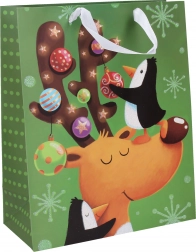 Maak je kerstcadeaus nog indrukwekkender met onze middelgrote cadeautas van 32x26x12 cm. Perfect voor het inpakken van kleine tot middelgrote geschenken in een elegante stijl. De keuze uit vier verschillende kerstmotieven laat je de juiste optie kiezen die past bij jouw smaak of decor. Hoogwaardig materiaal zorgt voor duurzaamheid en hergebruik: