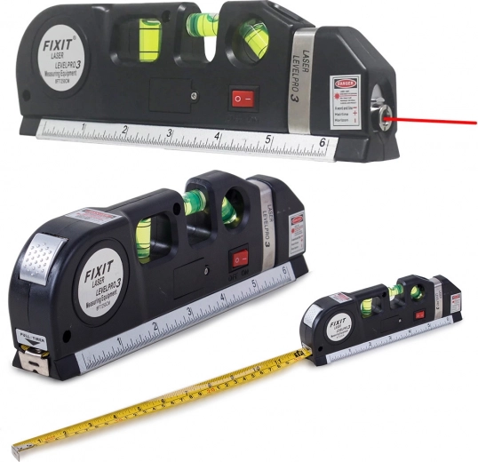 Laser waterpas met standaard meetlint en uitschuifbare meter