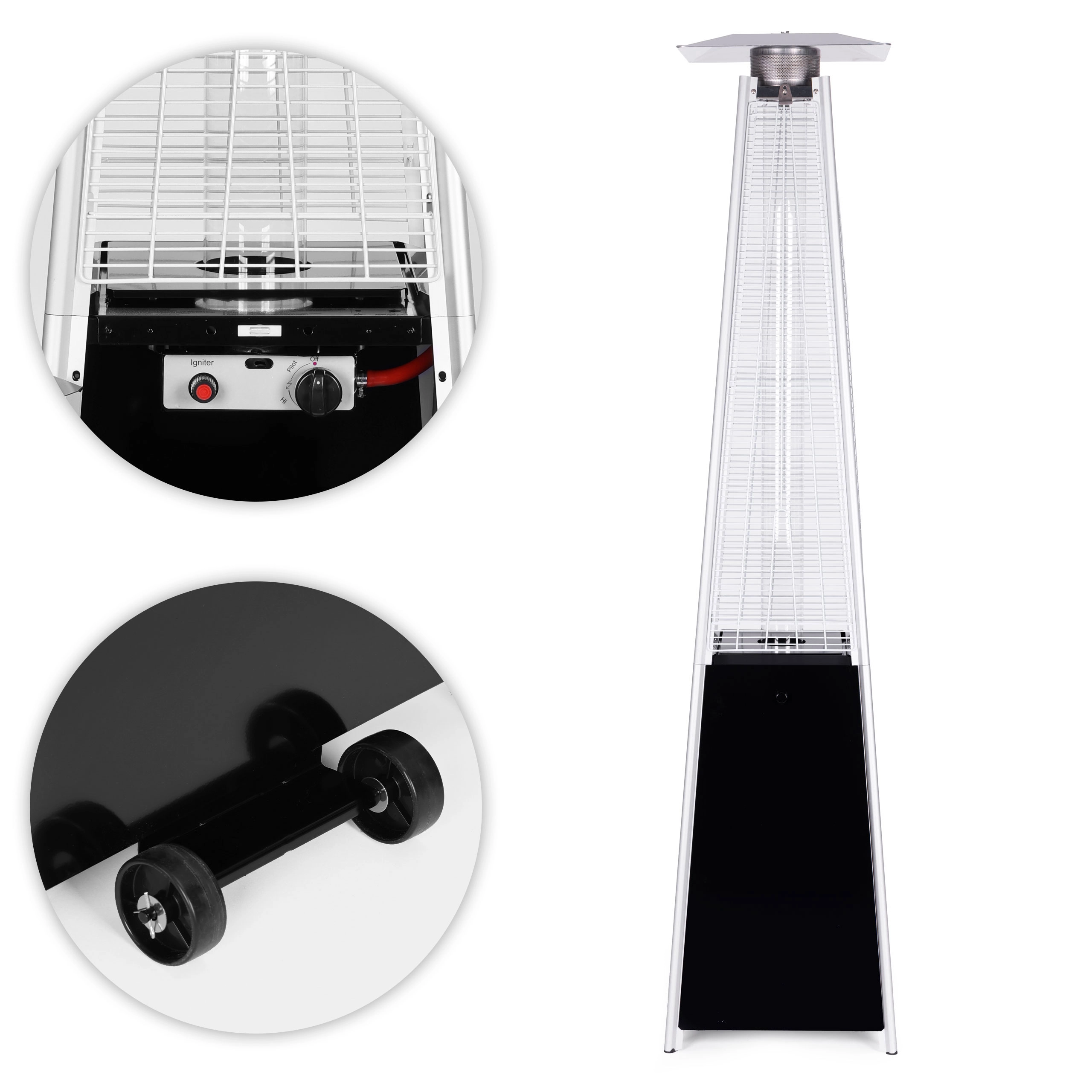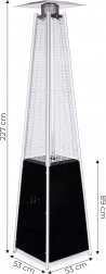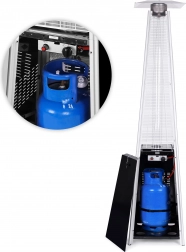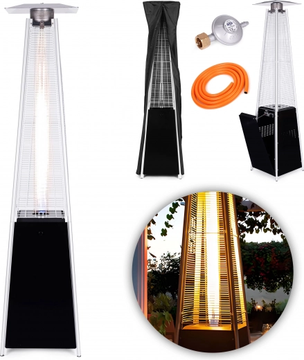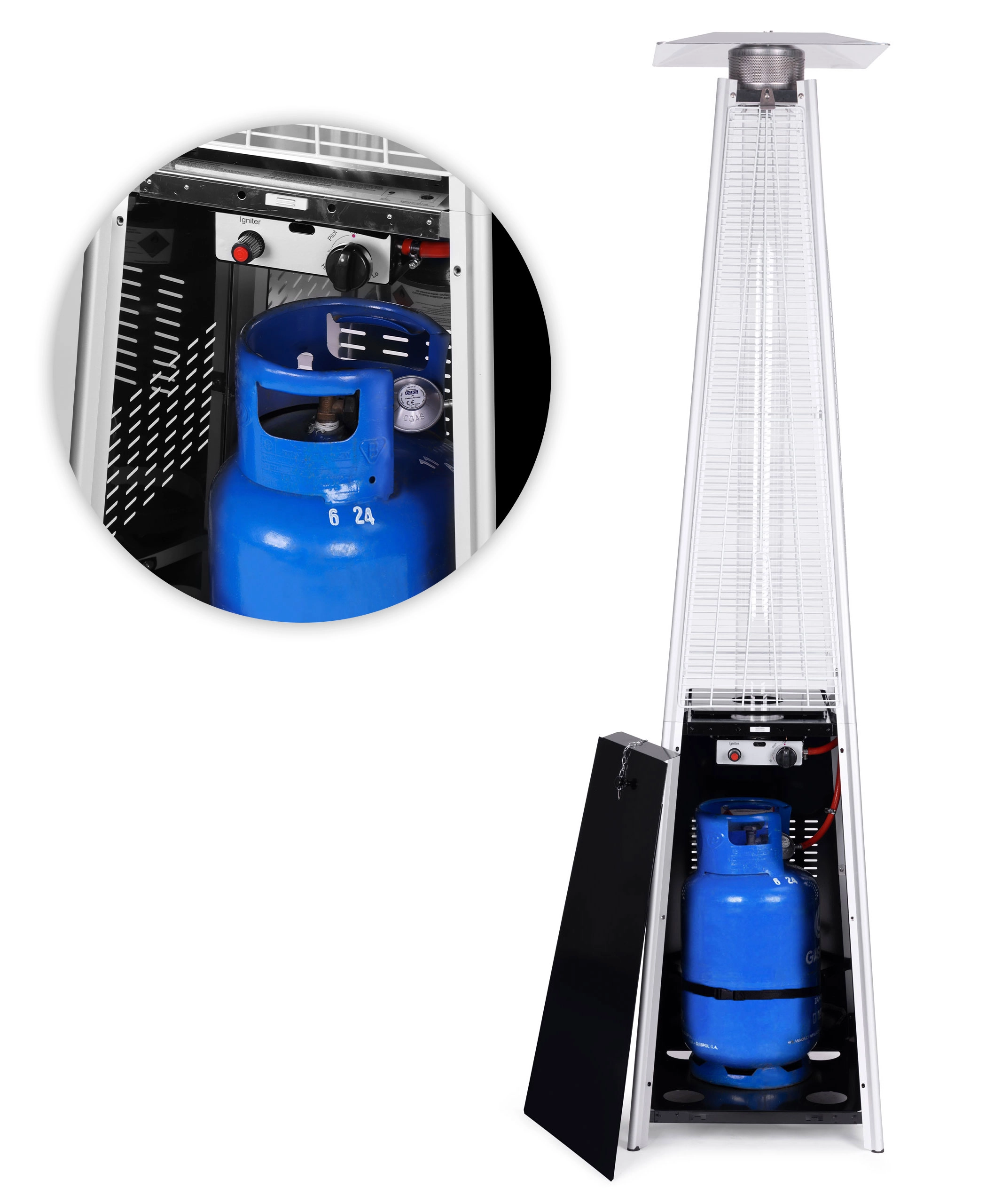 Deze design piramideverwarmer verandert elk samenzijn in een gezellige zone met zichtbare vlam. Dankzij het vermogen van 13 kW en de efficiënte verbranding van propaan–butaan zorgt hij voor een gelijke warmteverdeling op het terras, balkon of in het tuinhuisje. Elektrische ontsteking op 1× AA (inbegrepen) en traploze regeling maken het mogelijk de warmte-intensiteit aan te passen aan de omstandigheden.