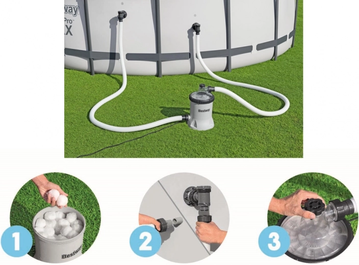 - Compatibel met opzetzwembaden met een inhoud: 1100–31700 l