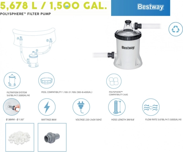 Technische specificaties:- Pompdoorstroom: 5678 l/u