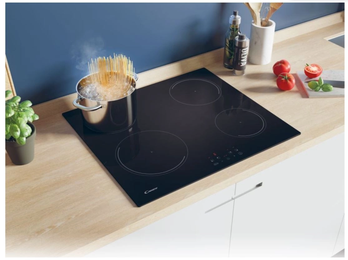 Ontdek de slanke en energiezuinige inductiekookplaat Candy Idea, die snelle opwarming, laag energieverbruik en intuïtieve bediening combineert. Dankzij de Booster-functie verkort u de kooktijd tot een minimum, terwijl vermogensbeheer helpt overbelasting van het elektriciteitsnet te voorkomen. De vier onafhankelijke zones bedient u via het centrale touchpaneel – eenvoudig, comfortabel en met maximale precisie.