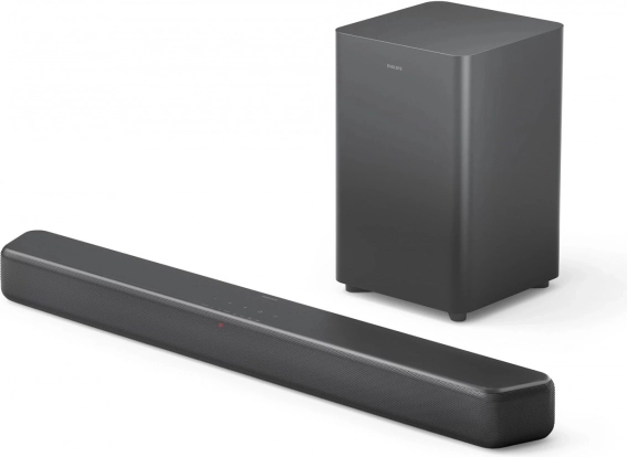Verbeter het geluid van elke film, game en afspeellijst met een 2.1-soundbar en een draadloze subwoofer. De technologieën DTS Virtual:X en Dolby Digital Plus zorgen voor een meeslepend surroundeffect, terwijl HDMI ARC, Bluetooth LE en EasyLINK voor eenvoudige aansluiting en bediening met één afstandsbediening zorgen.