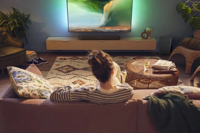 DTS Virtual:X zet het tv-geluid om in een virtuele 3D-ruimte en Dolby Digital Plus geeft films en muziek extra diepte – zonder extra achterspeakers.