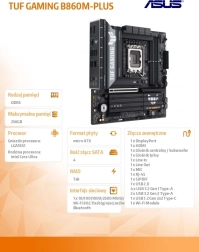 Het Asus TUF Gaming B860M-PLUS moederbord is een echt juweel onder de moederborden, ontworpen voor veeleisende gamers en technologieliefhebbers. Dankzij de LGA1851-processorvoet en ondersteuning voor Intel Core Ultra-processoren biedt het ongeëvenaarde prestaties en stabiliteit tijdens intensief gebruik.