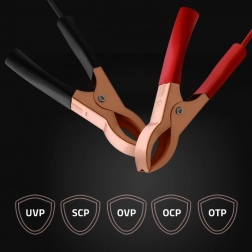 Snelle installatie: sluit de rode klem aan op de + pool, de zwarte op de – pool, kies de modus en het laden kan beginnen. Compacte en robuuste behuizing voor gebruik thuis en in de werkplaats.