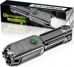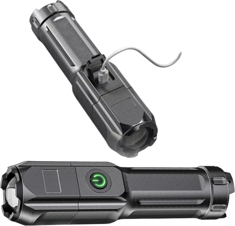 Deze zaklamp is uitgerust met een antisliphandgreep die zorgt voor een zekere grip en comfort, zelfs tijdens intensieve outdooractiviteiten. USB-opladen maakt het vervangen van batterijen overbodig, waardoor zij milieuvriendelijk en economisch voordelig is, met een batterijstatusindicator die aangeeft wanneer opladen nodig is.