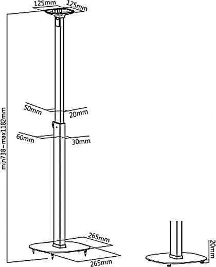 De standaard is uitgerust met een mechanisme voor hoogteverstelling, wat een optimale geluidsverdeling mogelijk maakt.