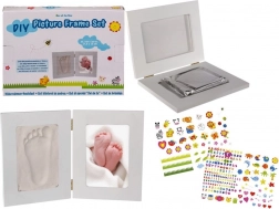 Maak een unieke herinnering aan de eerste maanden van je baby. Deze elegante lijst combineert ruimte voor een foto met een plek voor een afdruk in veilige boetseerklei, die is inbegrepen. Je bereidt de klei eenvoudig voor, drukt er zachtjes een handje of voetje in en laat het drogen. Het resultaat is een originele decoratie die de herinneringen voor altijd bewaart.