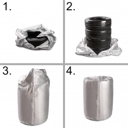 De hoes helpt orde te houden in uw garage of kelder door de banden tegen vuil te beschermen en simplificeert hun opslag.